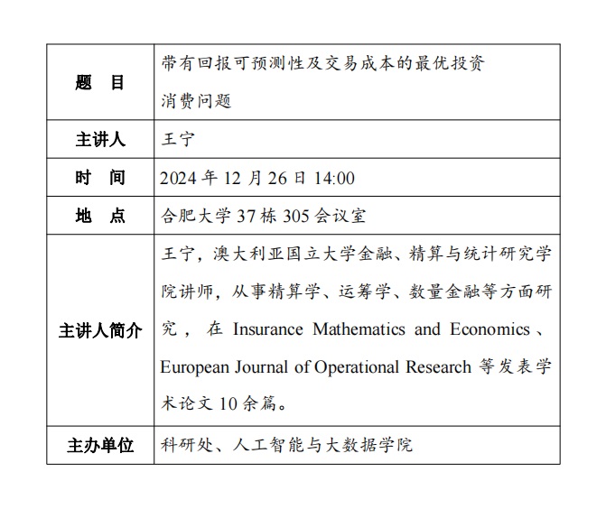 【善思講壇】帶有回報可預(yù)測性及交易成本的最優(yōu)投資消費問題