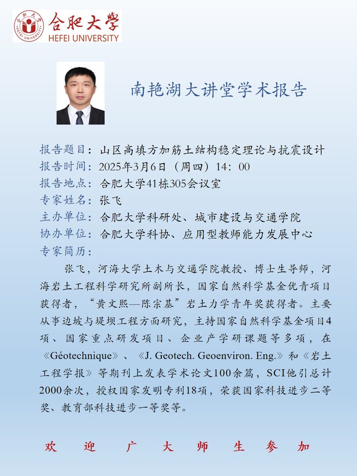 【南艷湖大講堂】山區高填方加筋土結構穩定理論與抗震設計