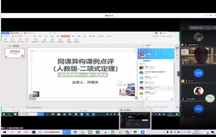 在7月1日聽了合肥市教育局正高級特級教師許曉天老師關(guān)于“二項式定理”的課例分析后,18數(shù)學(xué)湯慶君同學(xué)感慨:“首先非常榮幸能夠被許老師點評課程,聽了許老師的講解之后我清楚地認識到了自己上課中的不足,也對其他同學(xué)的優(yōu)點更加清晰。老師果然是數(shù)學(xué)屆的泰斗,說話不拖泥帶水,一擊即中,特別在回答我們提問的問題時,非常明確,有效解決了我的一些困惑……”。