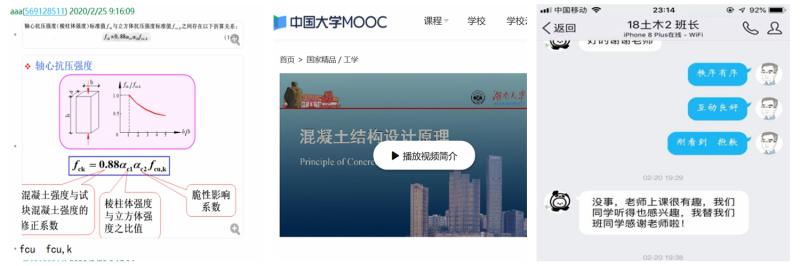 每次課程會精選兩到三個重要知識點,讓學(xué)生觀看慕課資源視頻,視頻中包含我們不具備的一些試驗圖片、動畫以及大師們的深入講解。視頻學(xué)習(xí)后,通過事先建立的課程QQ群,開展教學(xué)直播,以課程PPT為載體重點解釋本次課中重點知識點,與慕課視頻進行呼應(yīng)。40分鐘的直播講解主要講解重要知識點,前后知識的聯(lián)系以及與其他課程的交叉關(guān)系;討論、提問環(huán)節(jié)中可以通過學(xué)生的發(fā)言了解學(xué)生掌握深度,及時調(diào)整授課內(nèi)容,也通過激烈的討論激發(fā)學(xué)生的學(xué)習(xí)興趣,促進師生交流。