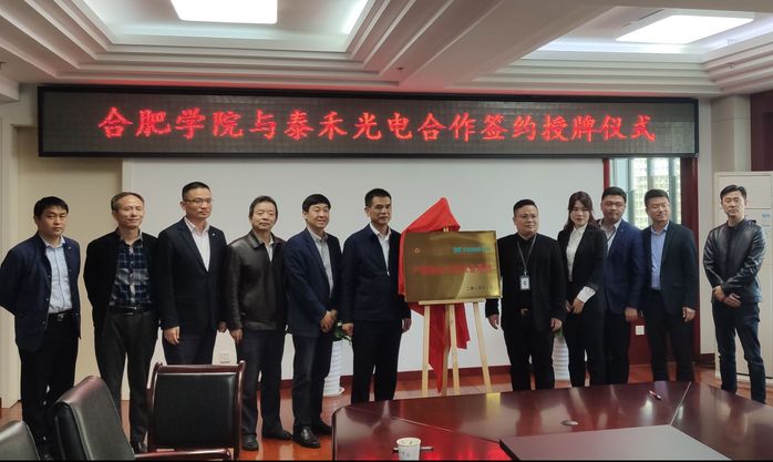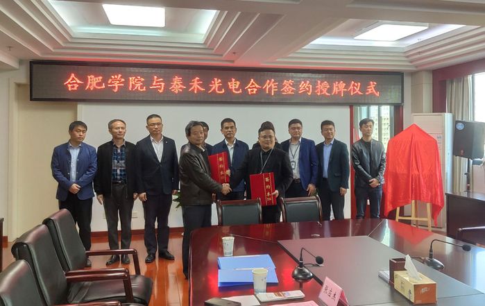 10月22日上午,我校與合肥泰禾光電科技股份有限公司簽約授牌儀式在行政樓九樓東會議室舉行。泰禾光電人力資源中心總監王忠軍,我校黨委委員、副校長盧平出席此次簽約授牌儀式,校黨委委員、學生處處長朱濤,科技處處長、服務地方辦公室主任汪潘義及先進制造工程學院院長呂剛、人工智能與大數據學院院長檀明等參加了儀式。