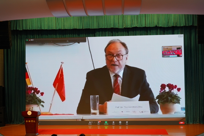 下薩克森州中國事務專員托馬斯·漢施克教授圍繞“中國-下薩克森州研究中心”作了報告。他表示,中德合作項目為推動中德雙方持續發展與深入合作奠定了堅實基礎,中德雙方的合作交流,讓科研和教學的跨國互動有了質的飛躍。在當下,數字化轉型、網絡安全與智能制造等領域的專業受到學生和企業的青睞,希望校企雙方加強合作交流,分享經驗,實現共贏。