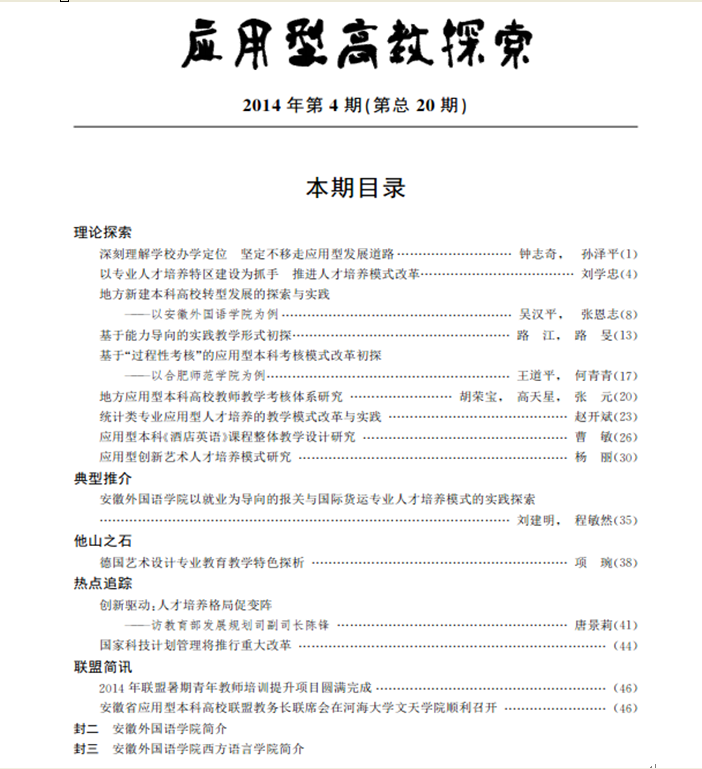 《應用型高教探索》2014年第 4 期(總第20期)已編發,具體內容請查閱發展規劃處網站http://www.kaihu8.xyz/s/85/t/330/p/6/list.htm