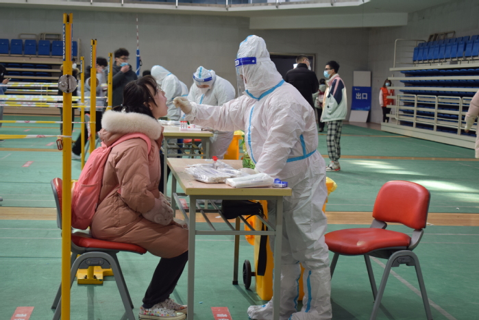 為保證平穩順利開學,此前學校召開了2022年春季學期第一次學生工作例會,綜合考慮當前疫情形勢、防控政策要求和本地本校實際,制定了春季學生返校方案,開展返校疫情防控實戰演練,確保疫情防控領導體制、應急機制、指揮體系高效運行,強化疫情防控部署、指導和督促檢查,多方面完善服務保障工作,為學生平安返校保駕護航。2月16日起,我校為返校師生全面提供了免費核酸檢測。“請同學們戴好口罩,保持一米距離,出示安康碼,先登記后檢測……”在二期體育館內,登記員對學生遞交的安康碼進行掃碼核驗,醫務人員依次采集咽拭子。學子們在核酸檢測區依次排隊、掃碼、登記、檢測,秩序井然。在教師、學生和醫護人員的全力配合下,全校順利完成核酸檢測任務,嚴格做到了“應檢盡檢,不漏一人”。