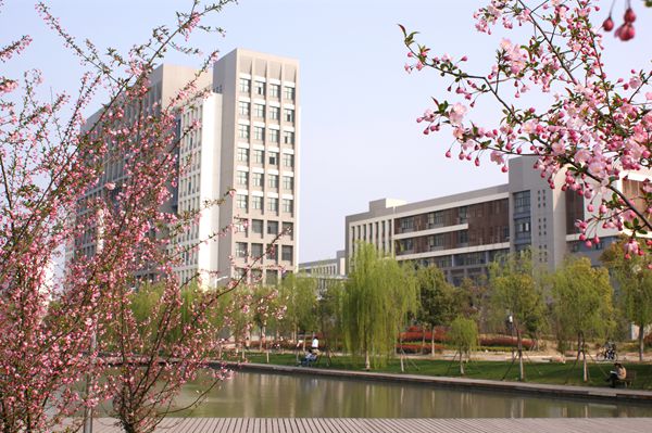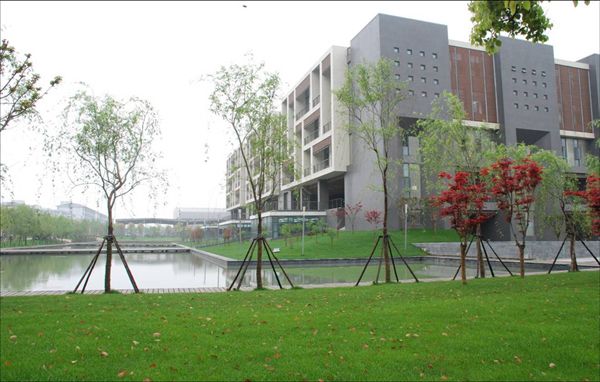 別過剛剛一區(qū)的古色古香,我們來到了現(xiàn)代化建筑林立的二區(qū)。我校體育館、圖書館等大型建筑都坐落在二區(qū)。湖畔旁柳樹垂立,路邊更有杜鵑花與之映襯。微風拂過,湖水泛起陣陣漣漪,柳枝也隨之起舞。我校體育館就在前方。這里的湖畔是“學霸”晨讀的圣地,每日清晨,必有一大批朝圣者。我校體育館內(nèi)設羽毛球場、籃球場、表演會廳等。記得的軍訓期間,在體育館內(nèi)聽過的“十佳榜樣學子報告會”,看過的軍訓匯報演出。體育館內(nèi)還舉辦過“全國大學生擊劍比賽”,“亞洲輪滑賽”“全國第四屆體育運動會”等大型賽事。