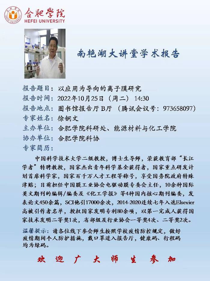 【講座預告】以應用為導向的離子膜研究