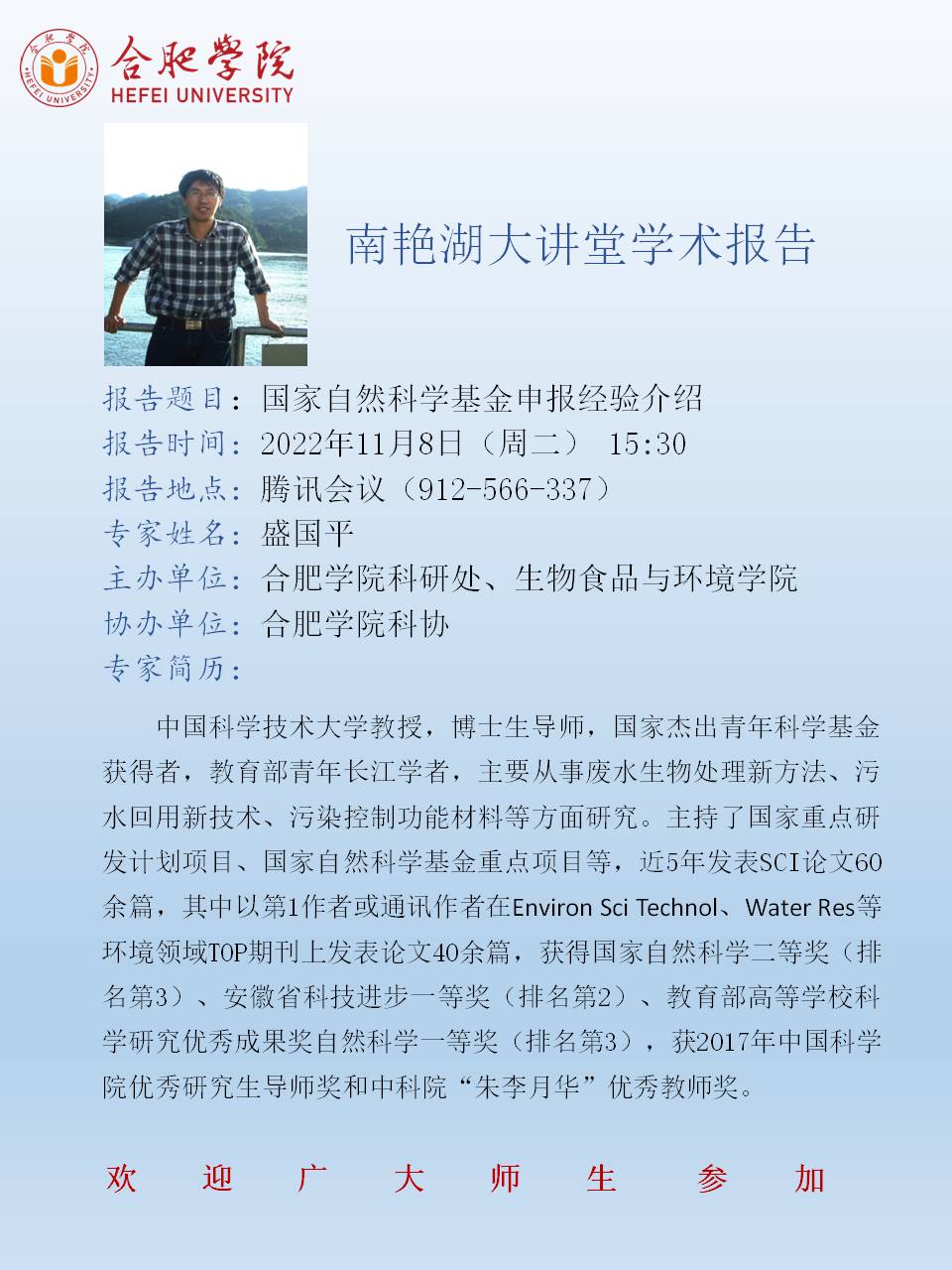 【講座預告】國家自然科學基金申報經驗介紹