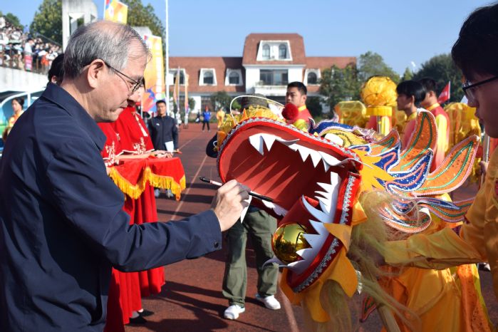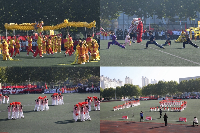 校領導親自為舞龍舞獅點睛后,各體藝俱樂部為全場師生帶來了精彩絕倫的文藝表演,觀眾席掌聲鳴動。從《龍獅、武術——武彩飛揚》的雄渾激昂到《啦啦操——歌唱祖國》的青春朝氣,再到《大眾操——活力悅動》的熱情四溢,直至《FD舞蹈——象王行》的大氣磅礴,每一幕都展現了學子們的多才多藝與青春風采,為運動會注入了無限激情與活力。