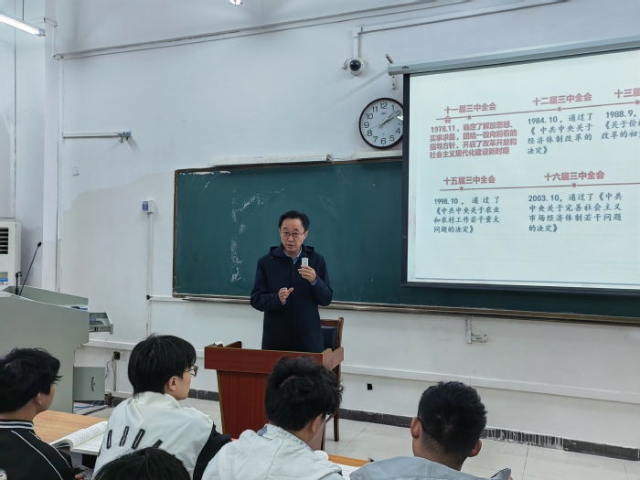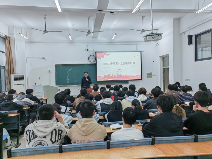 為深入學(xué)習(xí)貫徹黨的二十屆三中全會(huì)精神,推動(dòng)學(xué)習(xí)貫徹全會(huì)精神在學(xué)校走心走深走實(shí),10月22日,校黨委委員、紀(jì)委書記、省監(jiān)委駐合肥大學(xué)監(jiān)察專員吳功福走進(jìn)課堂,為2023級(jí)無機(jī)非金屬材料工程、機(jī)械自動(dòng)化(雙元制)、車輛工程、通信工程等專業(yè)的大學(xué)生宣講黨的二十屆三中全會(huì)精神。