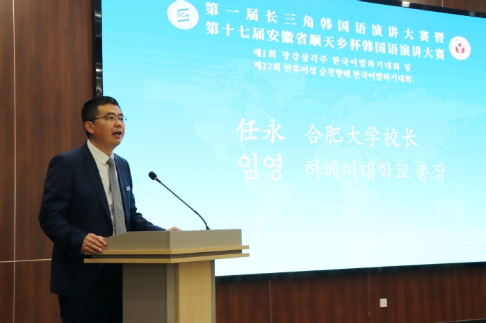 12月5日,第一屆長三角韓國語演講大賽暨第十七屆安徽省“順天鄉杯”韓國語演講大賽決賽在我校55棟學術報告廳舉辦。黨委副書記、校長任永,順天鄉大學副校長金龍夏和省教育廳外事處處長姚德勇出席開幕式,副校長陳秀出席頒獎典禮。