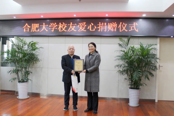 2月27日,我校在行政樓九樓會議室舉行校友愛心捐贈儀式。大灣區校友聯誼會名譽會長、1993級化工專業校友謝超群一行,副校長陳秀出席儀式。校友辦、能源材料與化工學院及安徽中德教育合作基金會相關負責同志參加。儀式由基金會管理辦公室主任劉金平主持。