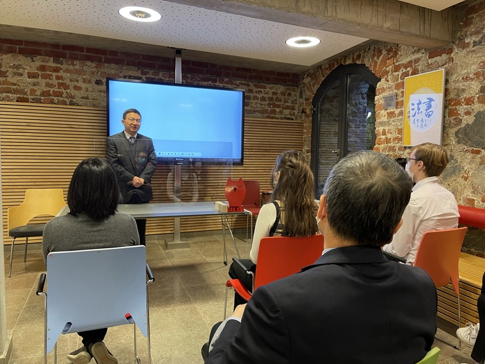 20211016日,第14屆中學(xué)生“漢語(yǔ)橋”德國(guó)賽區(qū)總決賽頒獎(jiǎng)典禮在施特拉爾松德市立圖書(shū)館成功舉行。施特拉爾松德孔子學(xué)院德方院長(zhǎng)法爾克·霍恩教授主持活動(dòng)并介紹獲獎(jiǎng)選手代表及與會(huì)嘉賓。