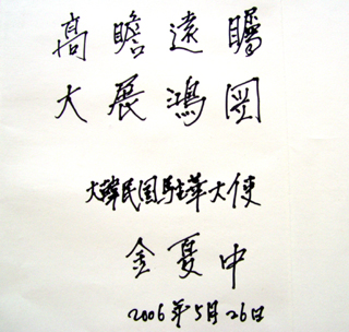 金夏中大使為我院題詞