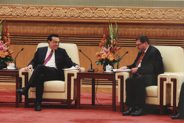 國務院總理李克強2月5日下午在人民大會堂親切會見在華工作的部分外國專家并同他們座談。我校客座教授、德國施特拉爾松德應用科學大學校長法爾克·霍恩、我校韓籍教授趙誠惠、樸南奎夫婦,作為在皖外國專家代表出席了座談,其中霍恩教授作為僅有的四位發言代表之一,重點就“中國制造2025”與“應用型高等教育改革”作了發言,并就我校“中德教育合作示范基地”籌建情況作了簡要匯報。