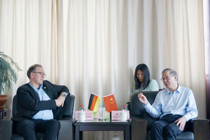 Am 18. April besuchte Prof. Dr. Michael Nelles, Gastprofessor der Universit?t Hefei, Tr?ger des Freundschaftspreises der chinesischen Regierung, wissenschaftlicher Gesch?ftsführer des Deutschen Biomasseforschungszentrums und Professor der Universit?t Rostock, die Universit?t Hefei. Wang Qidong, Parteisekret?r der Universit?t Hefei, führte ein herzliches Gespr?ch mit ihm, w?hrend Zhang Hui, Direktor des Amtes für internationalen Austausch und Zusammenarbeit, Wang Chuyan, stellvertretender Direktor des Amtes für wissenschaftliche Forschung, Ruan Banfeng, Vizedekan der Fakult?t für Biologie, Ern?hrung und Umwelt, und Yu Zhimin, Direktor des Internationalen Vereinten Forschungszentrums Anhui Biomasse (China-Deutschland), an der Sitzung teilnahmen.