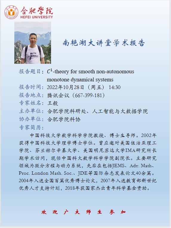 【講座預告】C1-theory for smooth non-autonomous monotone dynamical systems