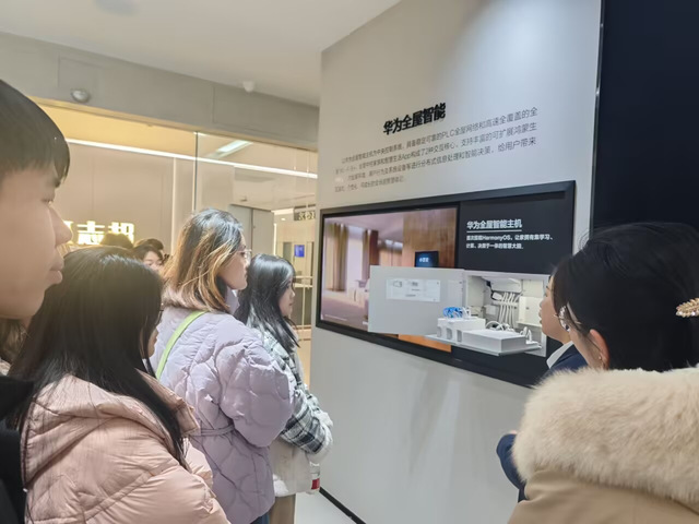 隨后,在華為工作人員的帶領下,大家共同參觀了華為全屋智能體驗店和智選車交付中心。在全屋智能體驗店中,同學們親身體驗了華為在智能家居領域的最新成果,感受了人工智能和大數據技術如何改變人們的日常生活。而在智選車交付中心,大家則詳細了解了華為在智能汽車領域的戰略布局和技術創新,對未來汽車行業的發展趨勢有了更加清晰的認識。
