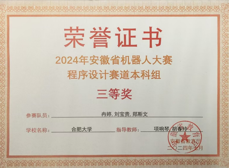 冉婷,女,漢族,出生于2004年6月,共青團員,合肥大學人工智能與大數據學院2022級智能科學與技術專業本科生,擔任班級學習委員。曾獲校特等獎學金、校“三好學生”、校“優秀干部”等榮譽稱號;先后獲2024年安徽省大學生創新大賽三等獎,2024年中國大學生程序設計邀請賽三等獎等。