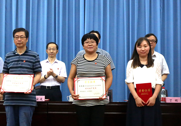 李秀娟老師(圖中)在合肥學(xué)院慶祝建黨95周年表彰大會(huì)獲頒“優(yōu)秀共產(chǎn)黨員”