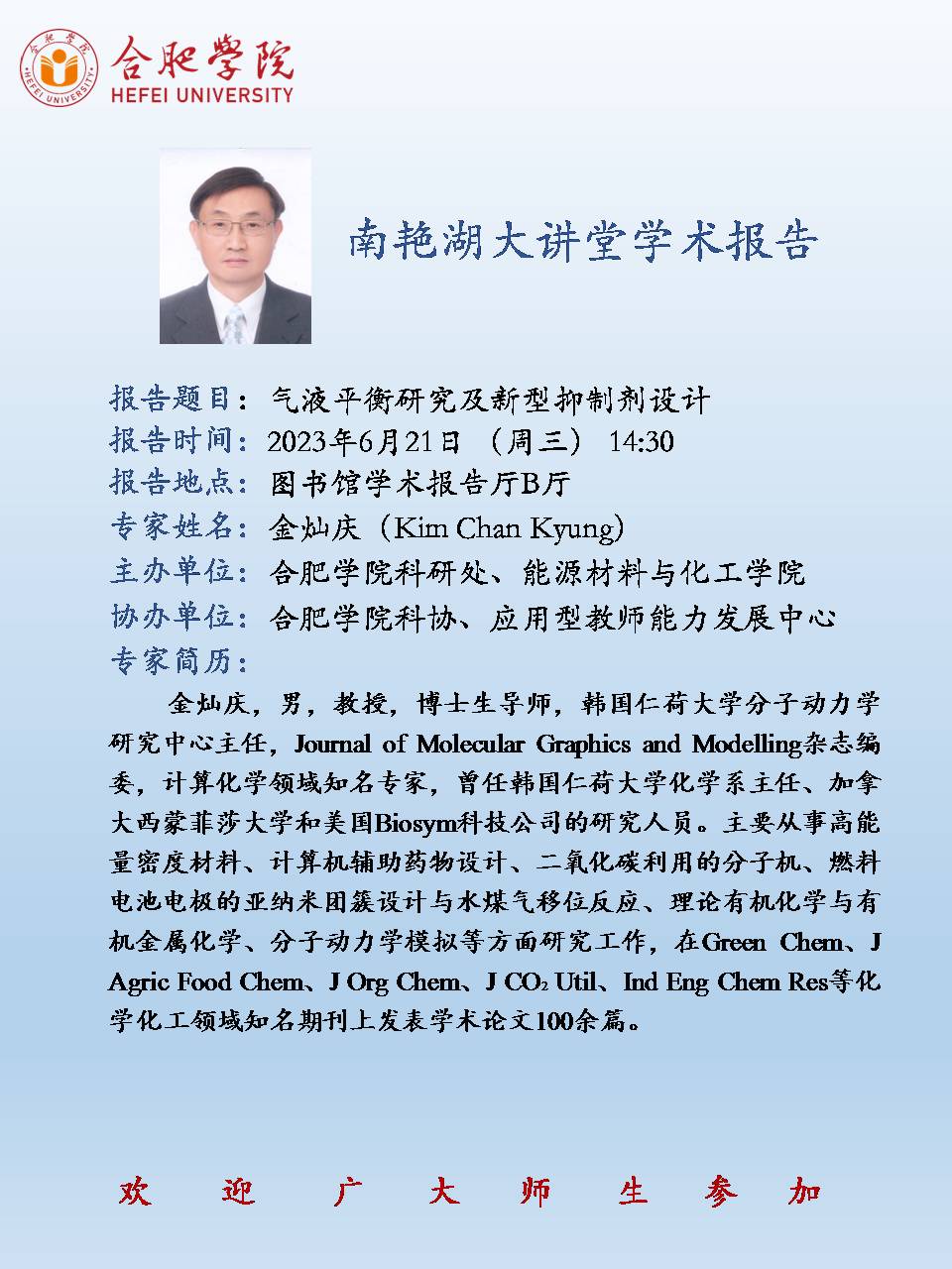 【講座預(yù)告】氣液平衡研究及新型抑制劑設(shè)計