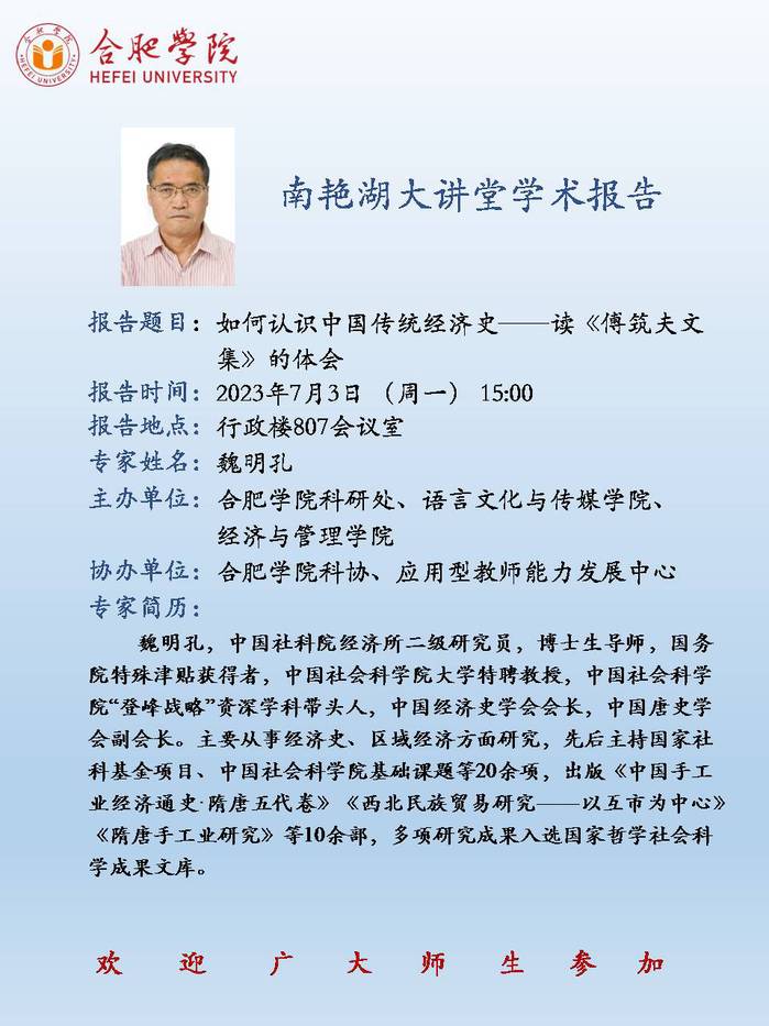 【講座預告】如何認識中國傳統經濟史——讀《傅筑夫文集》的體會