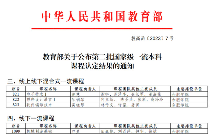 近日,教育部公布第二批國家級一流本科課程認定結果,我校4門課程入選第二批國家級一流本科課程。至此,我校共有7門課程獲得國家級一流本科課程認定,位居全省同類高校前列。