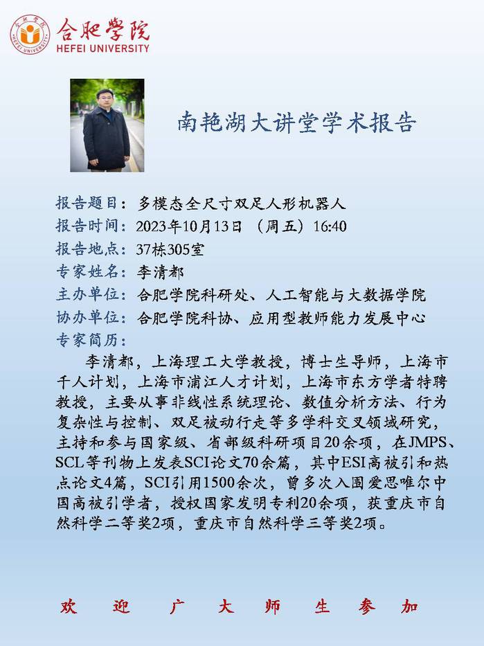 【南艷湖大講堂】多模態(tài)全尺寸雙足人形機器人