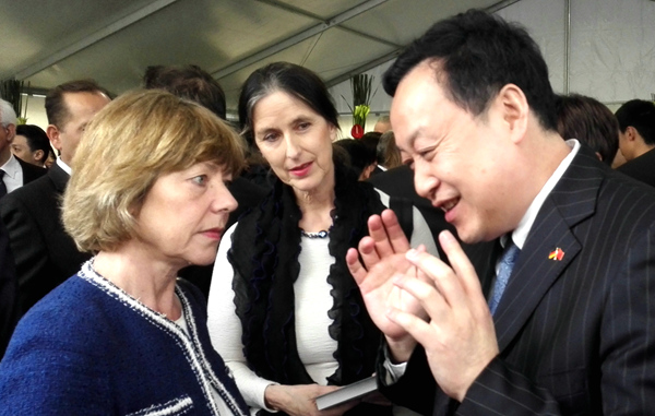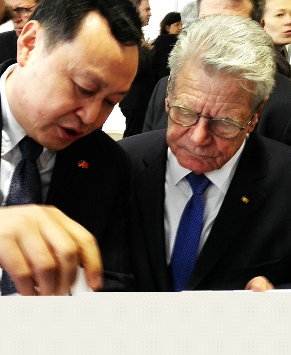 Anschlie?end führte Bundespr?sident Gauck ein Gespr?ch mit Herrn Cai. Dieser beschrieb dem Bundespr?sidenten die 31 j?hrige Zusammenarbeit zwischen der Universit?t Hefei und den deutschen Universit?ten, wie auch den Besuch von Bundeskanzlerin Merkel und Premierminister Li Keqiang. Au?erdem wurde auch der Aufbau der Modelleinrichtung der Bildungskooperation zwischen China und Deutschlandthematisiert. In seiner Reaktion darauf brachte Bundespr?sident Gauck seine Hoffnung zum Ausdruck, dass die Universit?t Hefei auf Dauer mehr Beitr?ge zur Kooperation zwischen chinesischen und deutschen Universit?ten leisten k?nne. Ferner wünschte er dem Aufbau der Modelleinrichtung der Bildungskooperation zwischen China und Deutschland viel Erfolg.