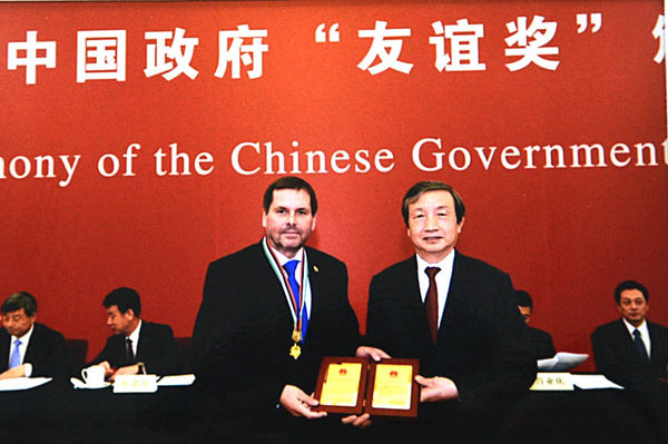 今年9月3日,中國人民抗日戰爭暨世界反法西斯戰爭勝利70周年紀念大會在北京舉行。在紀念抗戰勝利70周年慶典觀禮臺上,霍恩教授作為外國專家代表、中國友誼獎獲得者,全程參加了紀念抗戰勝利70周年活動,現場觀看了盛大的閱兵式。在紀念反法西斯戰爭勝利70周年活動中,霍恩激動地說:“習主席的講話很合時宜,其中有關‘永不稱霸、永不擴張’的表述令人印象深刻。”