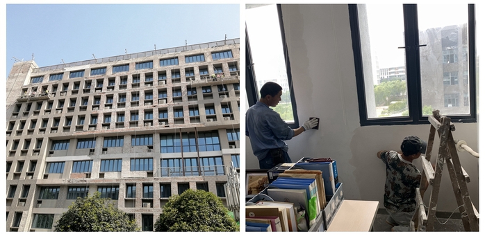 為有效解決安全隱患,完善基礎設施,合肥學院高度重視,第一時間研討解決方案,安排專業人員對校園建筑物進行了“立體式”“地毯式”的排查,制定清單逐項梳理,加強方案設計和比選論證,抓質量、推進度、強管理,全力推進建筑外墻維修工程項目。此前,克服疫情及建筑市場勞動力、原材料短缺的影響,基本完成立項批復的24棟中的21棟建筑單體外墻維修及相對應的內墻維修、衛生間漏水維修等,合計完成17.05萬平方米的外墻維修,基本解決外墻漏水、開裂、脫落等影響師生教學生活的問題,消除校園安全隱患。今年4月以來,校園建設與管理處與多部門聯動協調、科學謀劃、合理安排,在梅雨季節到來前加班加點完成行政樓外墻維修、內墻修補,并計劃利用暑期完成學生宿舍46棟、48棟的外墻維修。