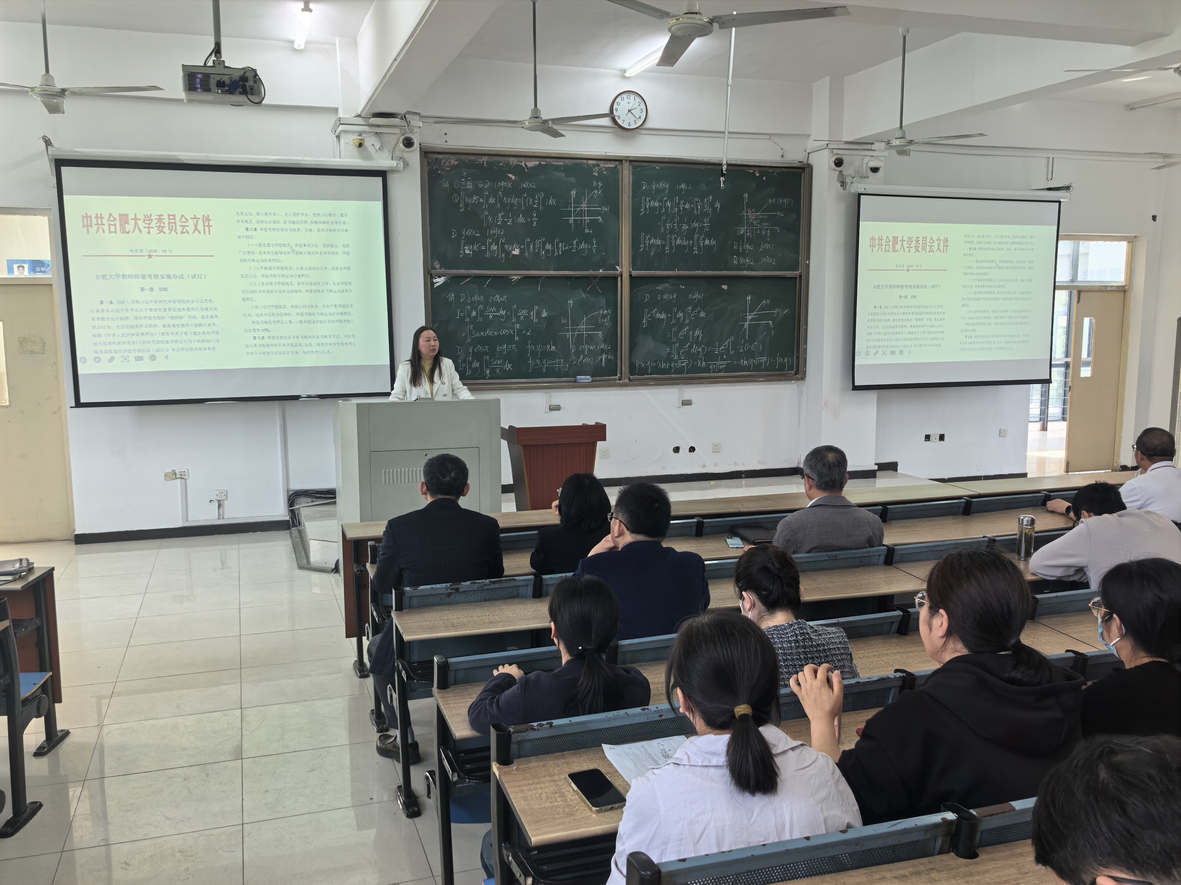接著,杜娟書記作廉潔紀律教育和師德師風建設教育及警示。組織全體教職工強化學習《合肥大學教師教學工作規(guī)程》和《合肥大學教師師德考核實施辦法(試行)》,還向全體教師展示了近期公開曝光的違反教師職業(yè)行為十項準則的典型案例,并從職稱評聘、教學管理、賽事組織、經費使用等方面就廉潔紀律和師德師風要求進行強調,要求全院教師將中央八項規(guī)定精神內化于心、外化于行,提高政治站位,以案為鑒,嚴于律己,做遵規(guī)守紀的表率。