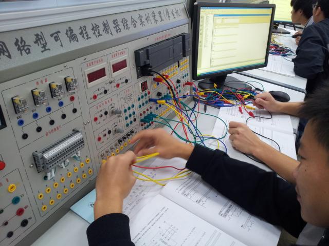 機(jī)電控制實(shí)驗(yàn)室2始建于上世界90年代,與2014年對內(nèi)部設(shè)備進(jìn)行了全部更新及擴(kuò)建,目前擁有天煌可編程控制實(shí)訓(xùn)裝置25臺(tái)套,總價(jià)值約為60萬元。目前主要承擔(dān)我院機(jī)械制造設(shè)計(jì)及其自動(dòng)化專業(yè)、機(jī)械電子工程專業(yè)的《電氣控制及PLC應(yīng)用技術(shù)》模塊,大陸班《控制技術(shù)》模塊及材料成型及控制工程專業(yè)的《機(jī)械測控》等模塊的實(shí)驗(yàn)課程,已開出實(shí)驗(yàn)項(xiàng)目有:實(shí)驗(yàn)臺(tái)認(rèn)識、硬件操作及軟件編程綜合實(shí)驗(yàn);基本指令實(shí)驗(yàn);定時(shí)器、計(jì)數(shù)器指令綜合實(shí)驗(yàn);十字路口交通燈控制實(shí)驗(yàn);SCR順控指令實(shí)驗(yàn)等,年均約為2400人時(shí)數(shù)。同時(shí)每年還能承擔(dān)20~30人的畢業(yè)設(shè)計(jì)等教學(xué)任務(wù)。