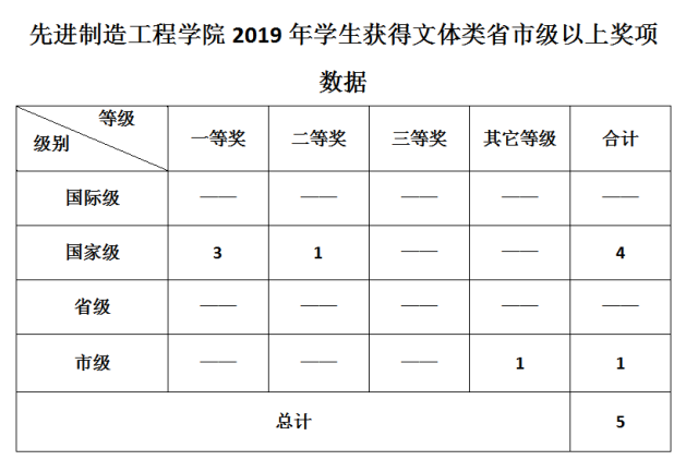 先進制造工程學院2019年學生獲得文體類省市級以上獎項數據