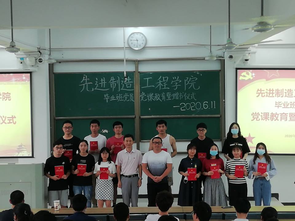 為了表達對黨員畢業生的美好祝愿,并激勵他們無論是在校期間還是事業起步階段,都應該廣讀書、 讀好書,讓好書相伴,保持思想上的警醒。2020年6月11日,先進制造工程學院2020屆畢業生黨員黨課教育暨贈書儀式于38棟3階梯成功舉辦。院黨委書記宋海峰、學工辦主任耿俁、院團委書記李妍妍、全體學生黨支部書記以及2020屆畢業班黨員參加了本次活動。