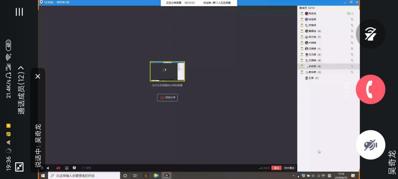 先進制造工程學院通信工程學生黨支部宣傳黨小組六月學習會議于2020年6月25日晚7點在線上以QQ視頻會議形式展開。通信工程學生黨支部宣傳黨小組全體12名成員參加。本次黨小組會議由吳奇龍同志主持,主要內容是讓黨小組成員了解熟悉宣傳黨小組的重新制定的基本職責、新成員相互熟悉,及一起觀看《人民的名義》第八集前半部分。
