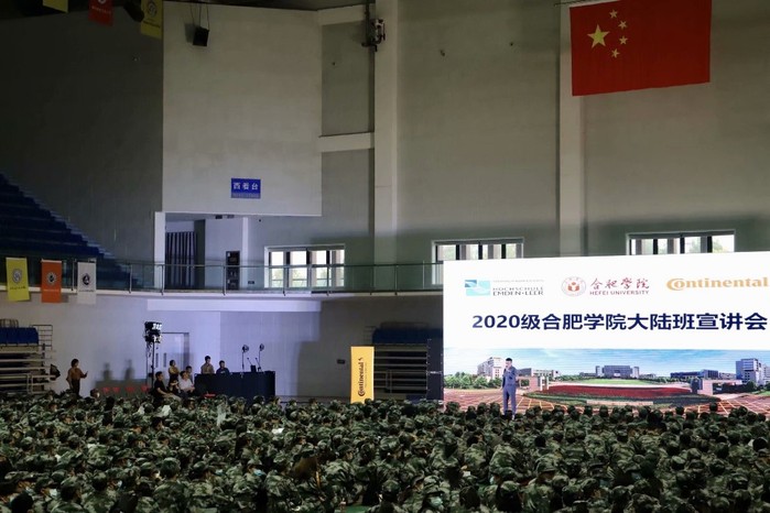 首先,他代表校方對合肥學院2020級新生致以誠摯的歡迎和祝福,并詳細介紹了這個由合肥學院、德國埃姆登里爾應用科學大學和大陸集團三方合作辦學的項目,闡明了大陸班的辦學理念和入學要求。他表示,無論是合肥學院校方還是德國高校和公司都對大陸班寄予了厚望,希望有能力和追求的同學加入大陸班,成為揮灑青春、一起拼搏的一員。