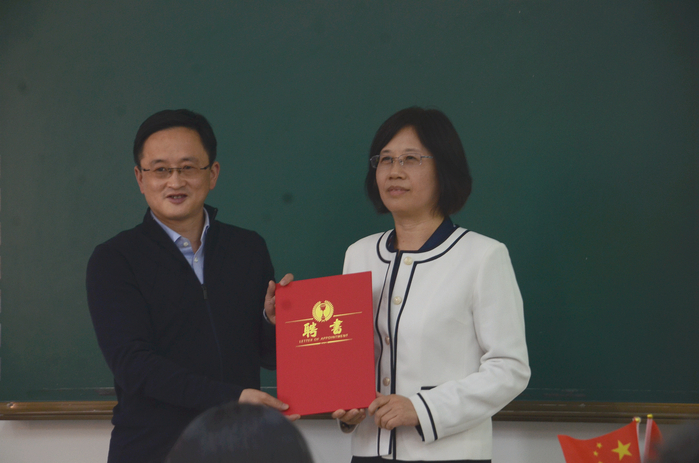 吳春梅為德國(guó)大陸馬牌輪胎(中國(guó))有限公司的四位出席嘉賓頒發(fā)合肥學(xué)院客座教授聘書(shū),感謝四位客座教授為雙元制大陸班專(zhuān)業(yè)乃至應(yīng)用型高等教育改革所作出的貢獻(xiàn)。她介紹了中德教育示范基地發(fā)展歷程,表示“大陸班開(kāi)創(chuàng)了人才培養(yǎng)新模式,是一個(gè)非常好的教育創(chuàng)新典范,也得到了雙方領(lǐng)導(dǎo)的認(rèn)同。希望同學(xué)們珍惜機(jī)會(huì),了解大陸班的人才培養(yǎng)模式,努力學(xué)習(xí),成長(zhǎng)成才。”