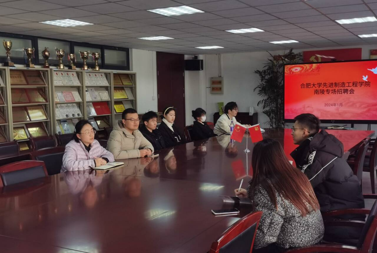 為做好應屆畢業生高質量就業工作,更好的服務畢業生就業需求,2024年1月4日先進制造工程學院于38棟305會議室舉辦南陵縣專場招聘會,本次招聘會是我院與南陵縣進行人才對接招聘,包括安徽舜富精密科技股份有限公司、安徽雅力士智能科技有限公司、安徽古麒絨材股份有限公司、安徽實貝自動化科技有限公司等共10余家招聘單位,招聘需求涉及我院多個專業,為我院畢業生提供就業崗位50個,288個人才需求。我院黨委書記杜娟、副書記蔡靈美、就業聯絡員張傲及部分畢業生參加招聘會。