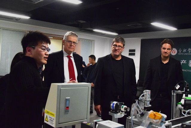Am 24. Oktober 2023 besuchte Herr Ralph Linde, Leiter für Volkswagen Institut am Hauptsitz der Volkswagen AG, die Hefei-Universit?t um an der Einschreibungszeremonie der Erstsemestler vom Volkswagen Institut teilzunehmen und die Ausstellung für bereits erzielte Früchte bei der deutsch-chinesischen Bildungskooperation sowie das Praktikums- und Forschungs- und Entwicklungszentrum vom Volkswagen-Institut zu besichtigen.