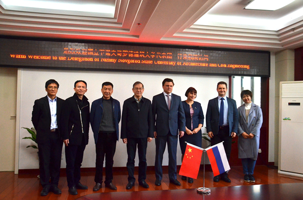 On November 13, Mr.Andrey A. Lapshin, president of the Nizhny Novgorod State University of Architecture and Civil Engineering(Russia) visits our school.