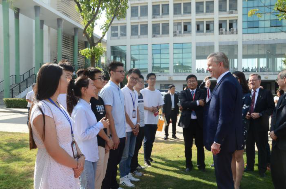 As an honorary professor of HFU, Mr. Wulff is very concerned about its construction and development. Mr. Wulff also mentions why HFU has attracted his visits(it is his fifth visit here): one is HFU students and its vibrant campus, the other is the education mode focusing on the combination of theory and practice.