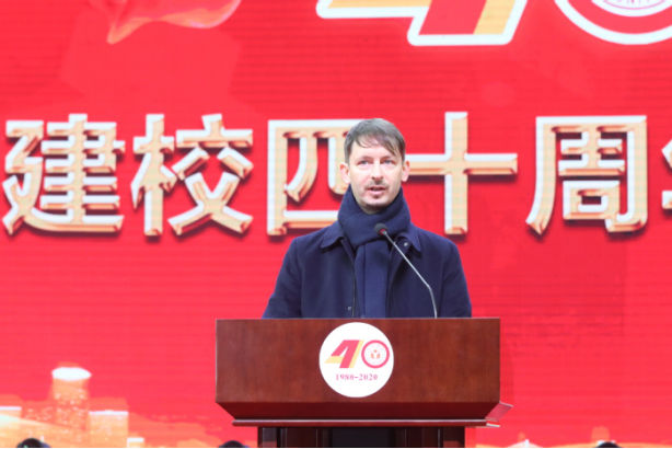 Yu Aihua, Secretary of Hefei Municipal Party Committee, extends his congratulations to all the staff, students and alumni at home and abroad on behalf of Hefei Municipal Government. He says that over the past 40 years, Hefei University has always adhered to its guideline of Localization, Application, and Internalization.