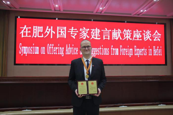 Prof. Dr. Thomas Weise, a German professor of Hefei University, is awarded the Hefei Friendship Award, who also delivers a speech as a representative for the award-winning experts. He says that Hefei, innovative, open and advanced, has strong competitiveness in the scientific research, which is also one of the most attractive cities for foreign experts in China. “When I came here, I met some much more excellent researchers. I'm here to learn.” He says.