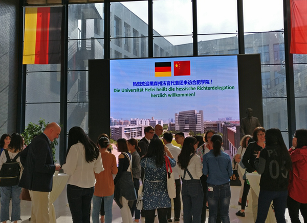 On April 23, 2017, Liu Jianzhong, vice president of HFU, hosted a welcome ceremony for Dr. Wilhelm Wolf, the court president of Hessian, Germany, and the Germany judge delegation at the library.