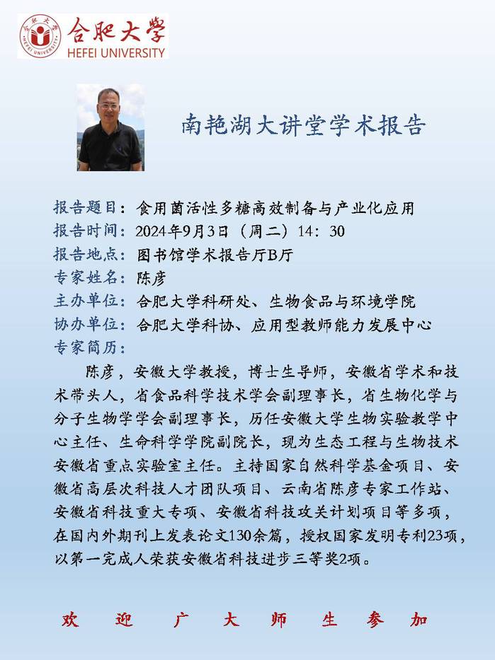 【南艷湖大講堂】食用菌活性多糖高效制備與產業化應用