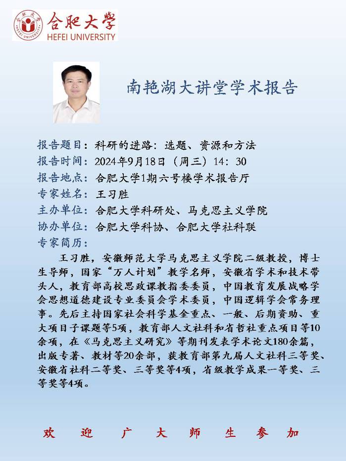 【南艷湖大講堂】科研的進路:選題、資源和方法