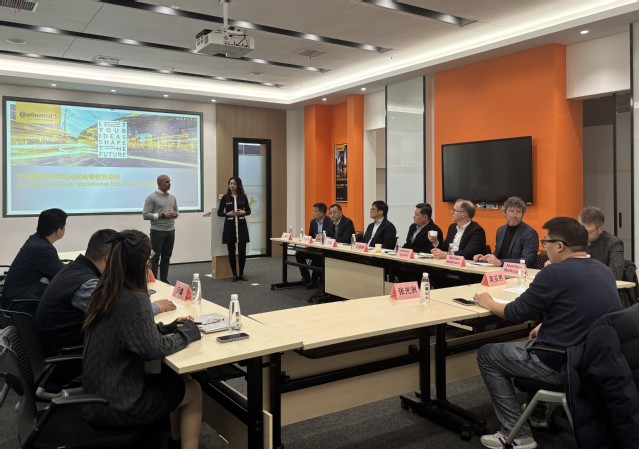 王曉峰一行首先拜訪總經理王小驥。雙方回顧了合肥大學與大陸集團、埃姆登/里爾應用科學大學自2016年以來共建“大陸班”合作歷程。作為國內首批雙元制高等教育試點項目,“大陸班”已累計招收190余名學生,畢業生中近一半進入大陸集團、大眾集團、博世西門子等全球知名企業工作,形成“企業需求前置、理論實踐并重”的特色培養模式。王曉峰表示,今年九月第十批“大陸班”學生即將入學,合肥大學將依托企業智能化升級契機,推動課程體系與產業技術前沿深度融合。