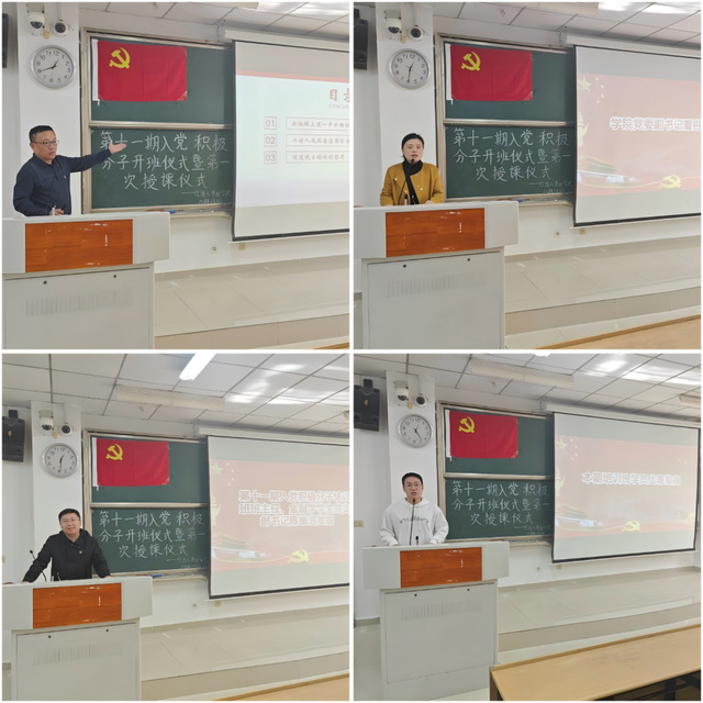 開班典禮上,首先,第十一期入黨積極分子學(xué)生代表熊澤豪同學(xué)分享了自己對于中國共產(chǎn)黨的深刻認(rèn)識并代表全體積極分子承諾將在黨課學(xué)習(xí)中嚴(yán)于律己、努力學(xué)習(xí)。隨后,陳維浩對本期培訓(xùn)班學(xué)員提出紀(jì)律要求,鼓勵(lì)學(xué)員們做到自律慎獨(dú),在日常學(xué)習(xí)、生活等方面爭當(dāng)先鋒模范。最后,夏丹青作動(dòng)員講話,她希望同學(xué)們珍惜本次黨課學(xué)習(xí)機(jī)會(huì),端正入黨動(dòng)機(jī),樹立為共產(chǎn)主義事業(yè)奮斗終生的理想信念。