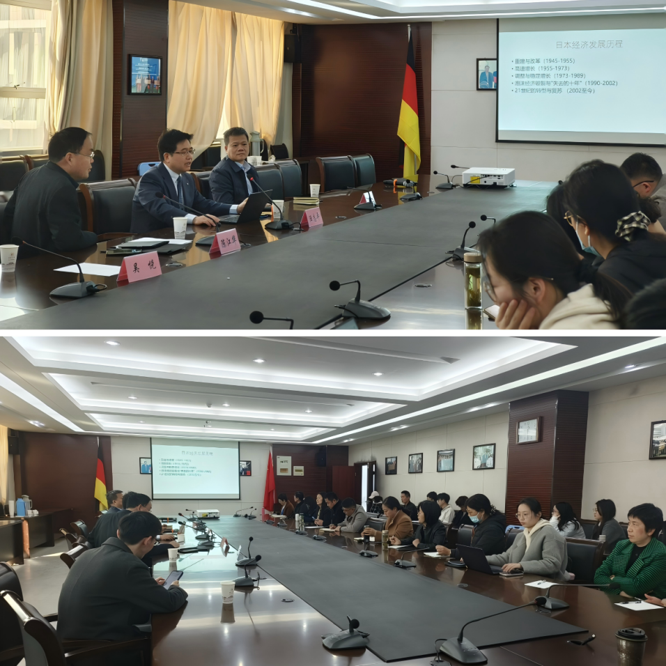 3月21日上午,日本札幌大學(xué)汪志平教授受邀為經(jīng)濟(jì)與管理學(xué)院師生作《日本經(jīng)濟(jì)的現(xiàn)狀及趨勢(shì)研究》學(xué)術(shù)報(bào)告,報(bào)告會(huì)由陳江華院長(zhǎng)主持,國(guó)際交流合作處副處長(zhǎng)孔春華出席報(bào)告會(huì),經(jīng)濟(jì)與管理學(xué)院相關(guān)專業(yè)教師及24級(jí)研究生參與報(bào)告會(huì)。