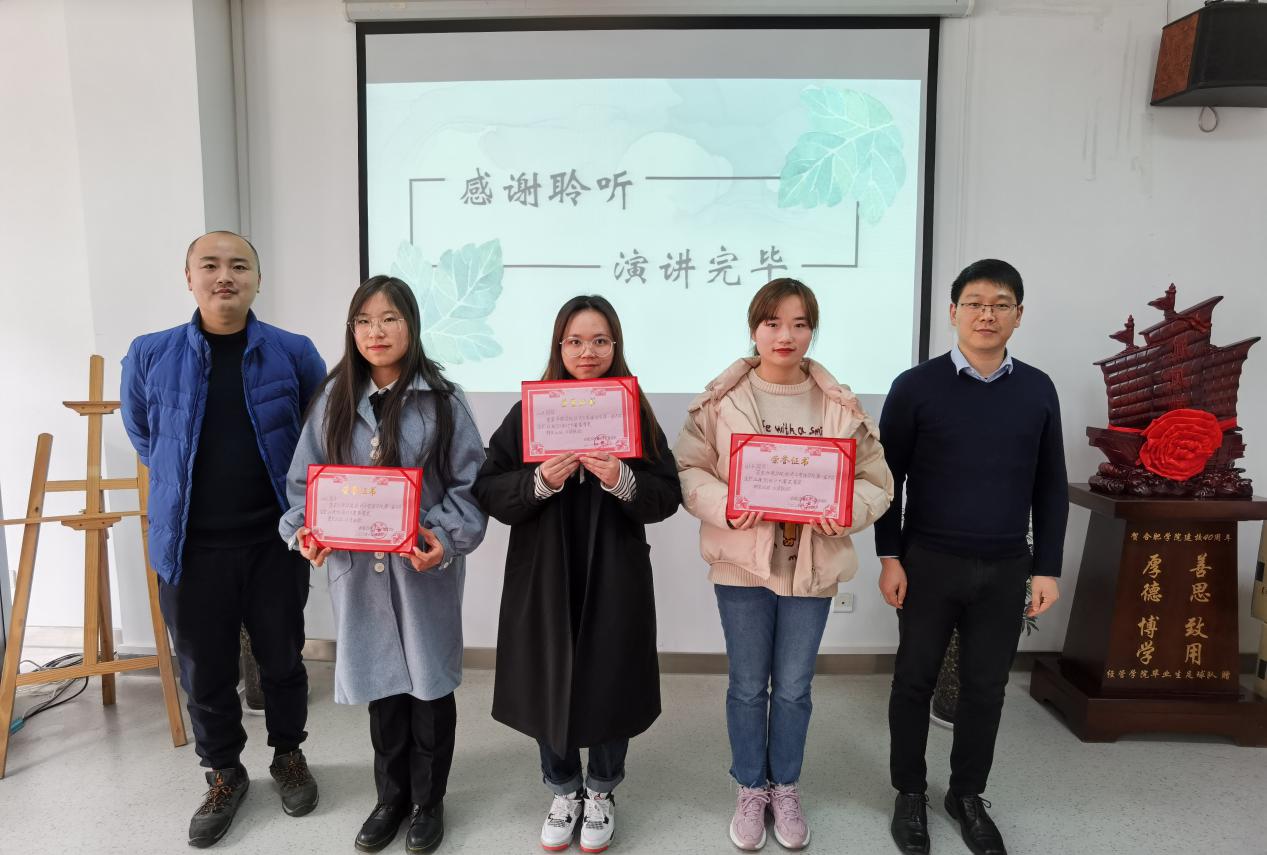 20201224日,經(jīng)濟(jì)與管理學(xué)院第一屆職業(yè)規(guī)劃設(shè)計大賽于我校博學(xué)樓B座二樓會議室順利舉辦。本次大賽由經(jīng)濟(jì)與管理學(xué)院黨委書記楊學(xué)春、安徽五十六鋇教育科技有限責(zé)任公司總經(jīng)理宋紅彪以及經(jīng)濟(jì)與管理學(xué)院老師王晨森、于昊、陳維浩、劉丹青擔(dān)任評委,經(jīng)濟(jì)與管理學(xué)院部分學(xué)生推選參賽。